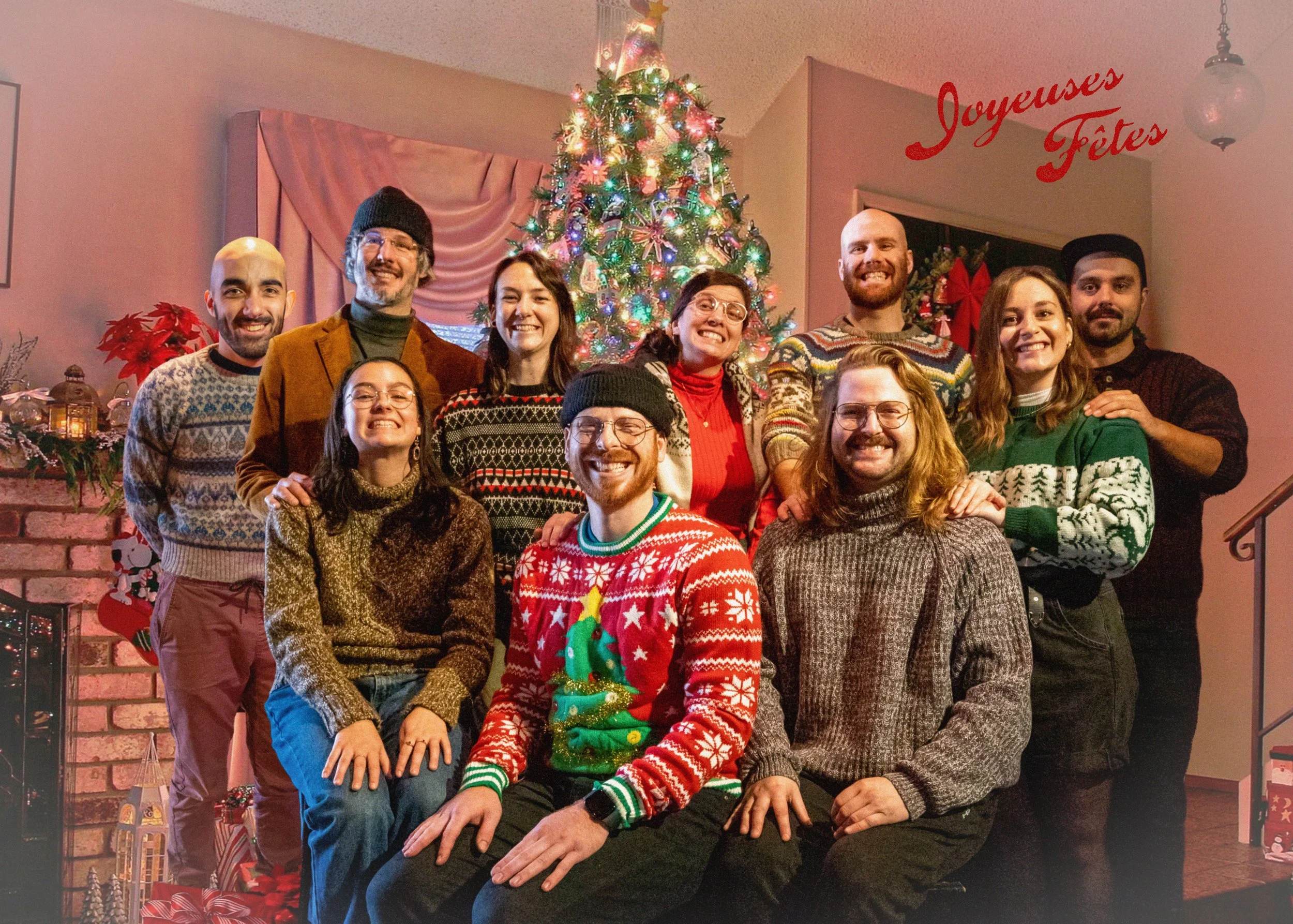Notre équipe s'est vêtue de ses plus beaux habits (surtout pas quétaines) pour vous souhaiter de Joyeuses Fêtes ! Un merci tout spécial à vous tous.tes qui êtes plus nombreux que jamais à nous suivre dans nos projets parfois un peu fous !