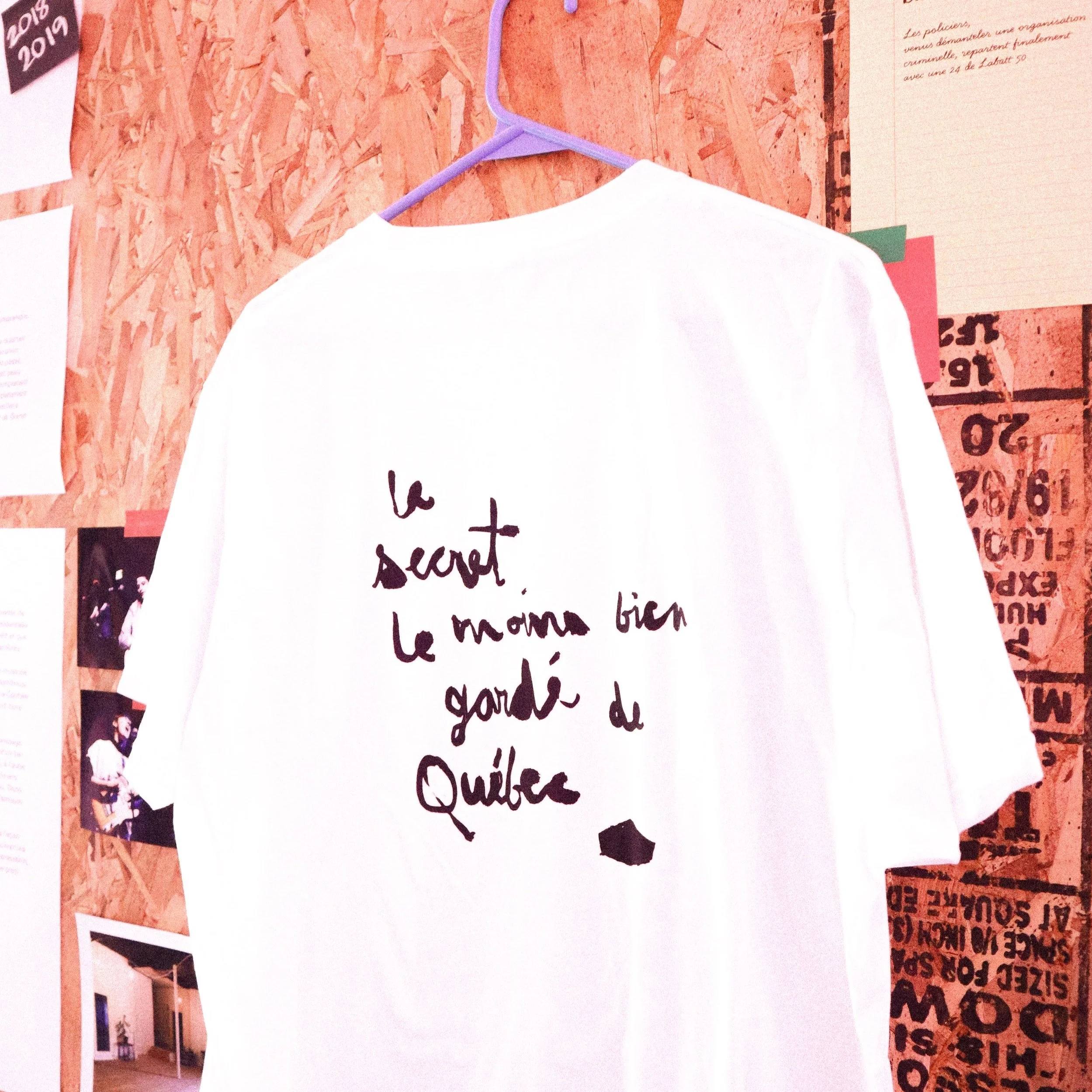 Notre exposition est peut-être terminée, mais on a quand même décidé de mettre en vente une quantité très limitée du t-shirt officiel du «𝑆𝑒𝑐𝑟𝑒𝑡 𝑙𝑒 𝑚𝑜𝑖𝑛𝑠 𝑏𝑖𝑒𝑛 𝑔𝑎𝑟𝑑𝑒́ 𝑑𝑒 𝑄𝑢𝑒́𝑏𝑒𝑐 » En plus d'être beau, tu pourrais porter le design de Thomas B. Martin !