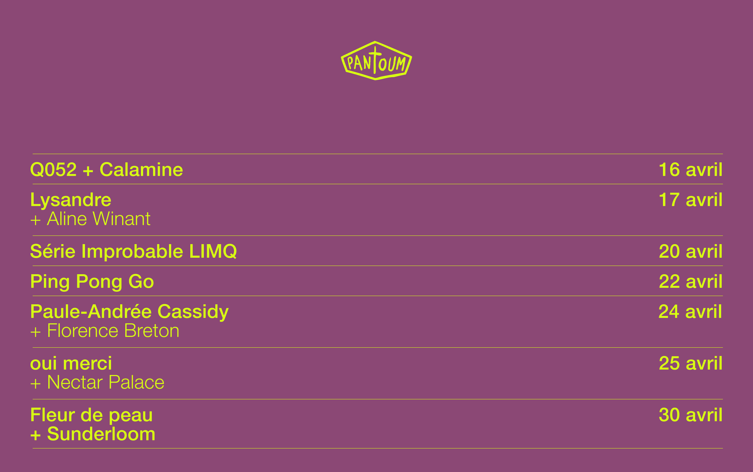 On a pleinssss de beaux shows en avril, c’est pas le choix qui manque! Prends ton billet maintenant avant qu'il ne soit trop tard! On a hâte de vous voir 💛