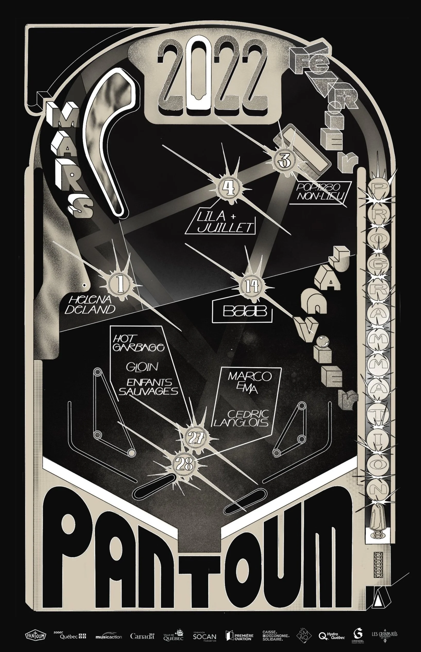 Marco Ema, Cedric Langlois, Hot Garbage, Enfants Sauvages, Gloin, Pop. 1280 et Non-Lieu s’ajoutent aux spectacles déjà annoncés d'Helena Deland, BAAB, l i l a et Juillet.